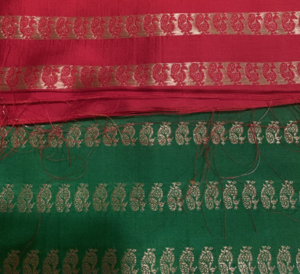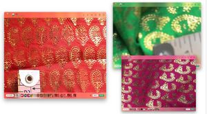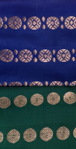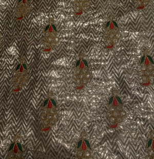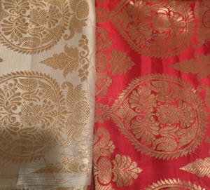 - Weft (bānā): zari threads (gold/silver metallic threads).