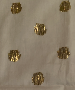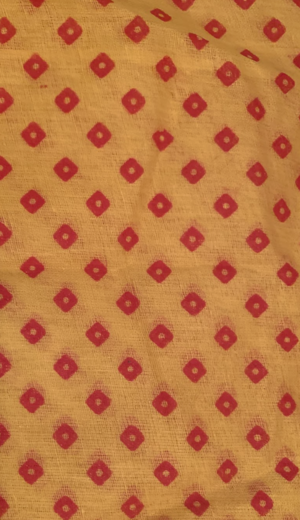 - Kiṃkhāba silk fabric (reśamī vastra) in which coin-like round motifs(buṭṭe) are woven with zari.